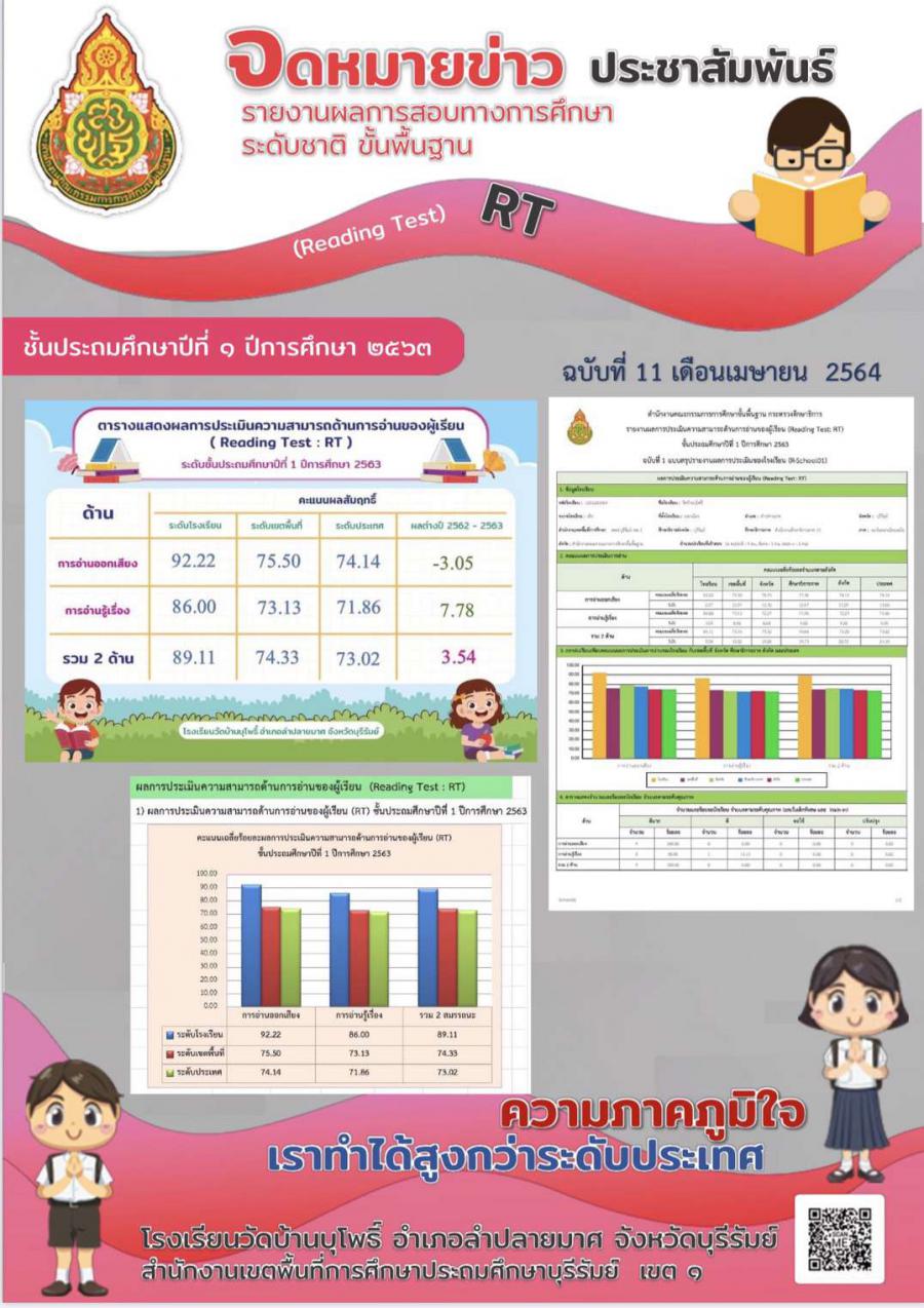 รายงานผลการทดสอบความสามารถด้านการอ่านออกของผู้เรียน (Reading Test : RT) ชั้นประถมศึกษาปีที่ 1