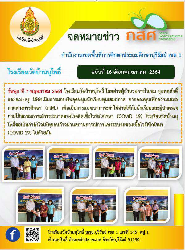 การมอบเงินอุดหนุนนักเรียนทุนเสมอภาค (กสศ.)ภายใต้สถาณการณ์การระบาดของโรคติดเชื้อไวรัสโคโรนา (COVID 19)